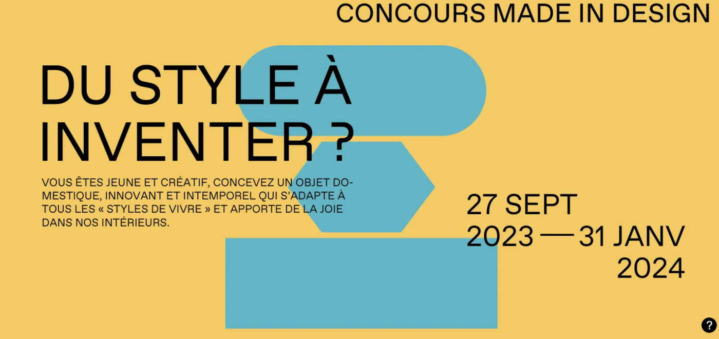 Ouvert aux étudiants en école de design et aux jeunes designers indépendants de 18 à 30 ans, le concours Made in Design a pour sujet la conception d’un objet domestique, innovant et intemporel qui s’adapte à tous les « styles de vivre » et qui apporte de la joie dans nos intérieurs.