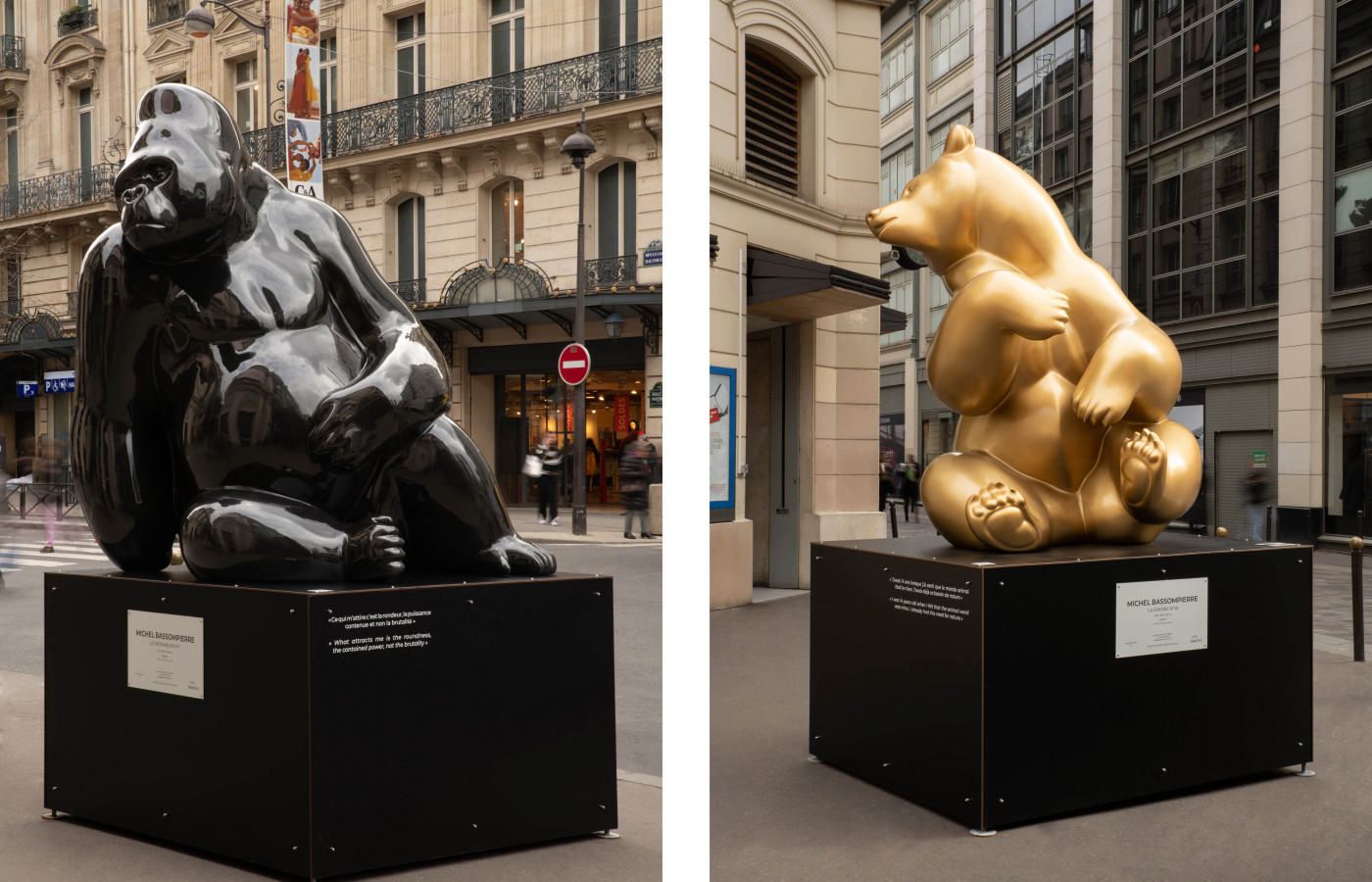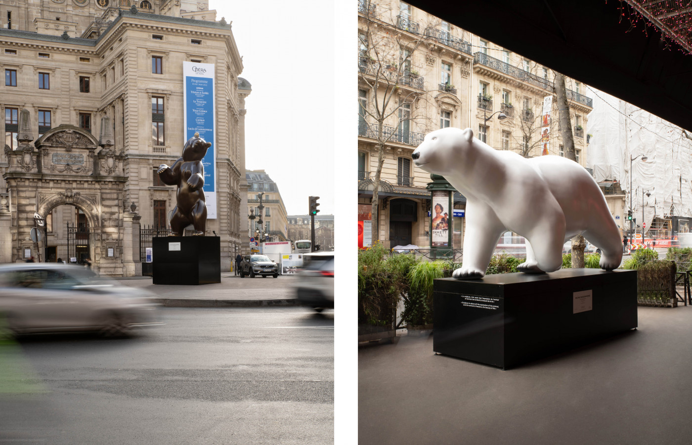 Du 1er février au 31 mars, les visiteurs pourront admirer « Le Mélèze », un ours dressé de 4 mètres de hauteur. L’expérience ce prolonge au sein du théâtre Mogador avec 3 œuvres de l’artiste. Les sculptures monumentales d’ours et de gorilles se font les représentants symboliques des espèces en danger. Leurs habitats sont mis à mal par la pression du changement climatique et celle des humains.