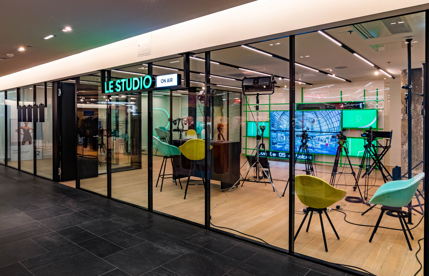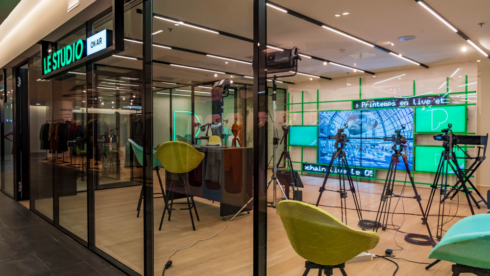 Situé au 4ème étage du Printemps Haussmann, Le Studio est le premier espace média installé au cœur d'un grand magasin. Ce lieu ultra connecté, doté de matériel haute performance et de solutions digitales reconnues comme Bambuser a pour vocation de produire une programmation riche entre Live Shopping, Podcast, Meet-Up et Shooting.