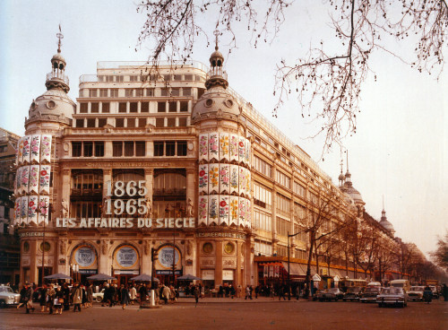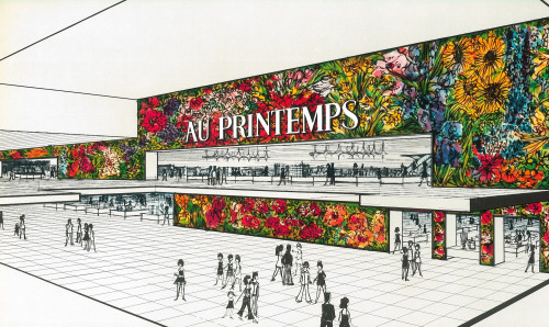 To ring in its centenary, Printemps put on a spectacular show: the facades and interiors of its Haussmann stores were completely decked out with floral banners designed by artist Alain Le Foll. The store also launched a number of initiatives, including the “sale of the century” campaign entitled “Les Affaires du siècle 1865-1965”.