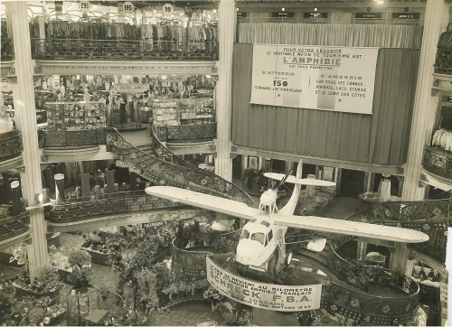 In 1931, under its historic cupola in the middle of its main halls, Printemps presented an amphibious Schreck F.B.A. 310/1 from the Franco-British Aviation Company: a three-seater touring seaplane capable of landing or alighting “on all canals, rivers, lakes, ponds and along the coast”.