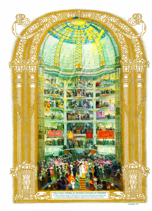 First inaugurated in 1910, Les Nouveaux Magasins fell victim to a terrible fire sparked by a short circuit in 1921. While its facades and essential structure were largely spared, the ceilings and floors all collapsed, taking a portion of the halls and two cupolas along with them.