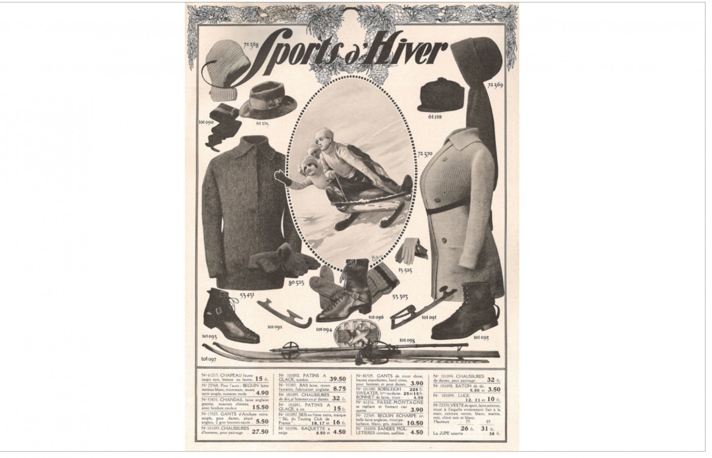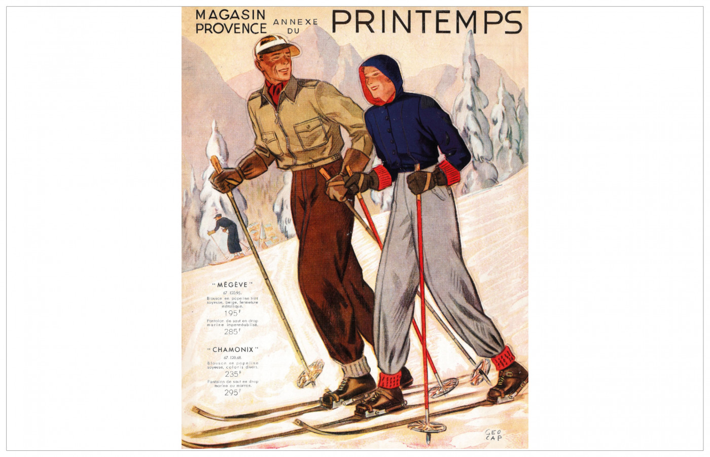 By the end of the 1920s, the sport had become more popular and major fashion houses like Jean Patou, Elsa Schiaparelli and Hermès started to take an interest in this emerging trend. Since then, winter collections have only grown larger and more popular. Printemps even began publishing full catalogues devoted to winterwear every year!