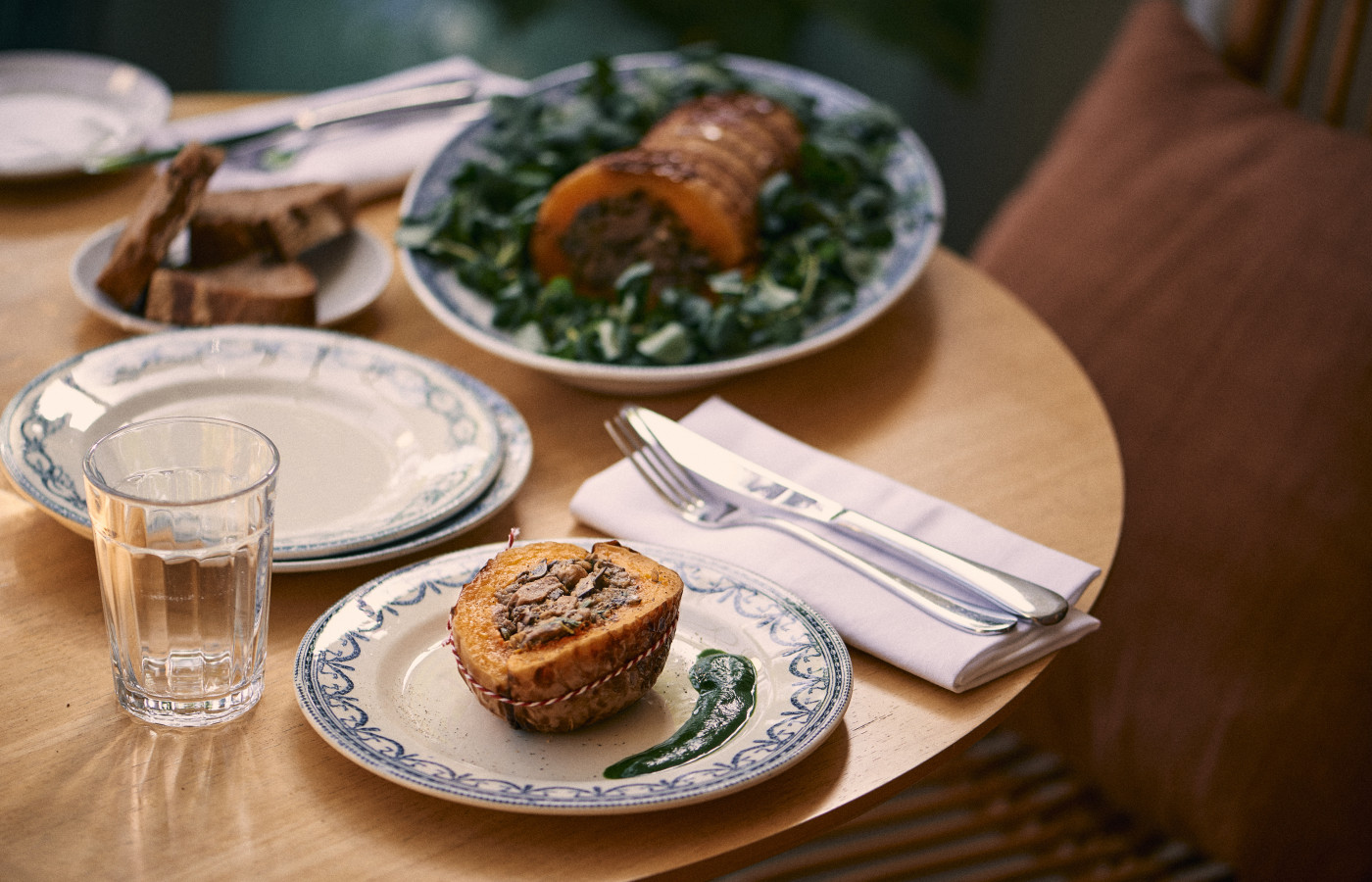 On the Bleu Coupole menu, recipes from Miss Maggie’s Kitchen come to life! There you’ll find recipes from her books "Chez Miss Maggie's Kitchen" and “Mon art de recevoir” ("My Art of Hosting”, both published by Flammarion), such as orzo soup with lemon sage, butternut, sage and fresh goat cheese tart and the grilled shiitake mushroom macaroni. An ode to autumn on your plate !