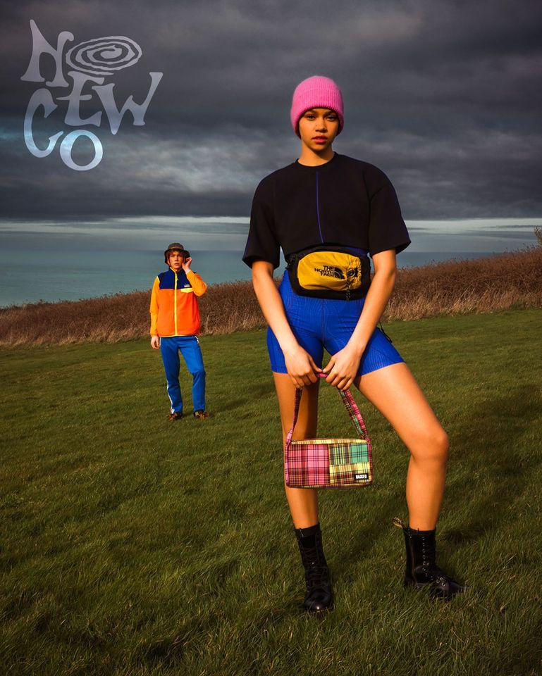 NewCo showcases layered materials, vented cuts and ski masks, while the photo shoot represents characters who play with striking color combinations: purple, neon green, grey, check patterns and warm knits.