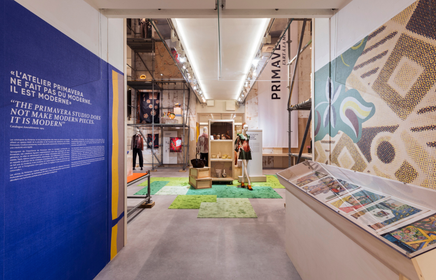 For the first time in an exhibition of this scale, Printemps is exhibiting a selection of XXL reproductions of textiles from the MAD and the Bibliothèque Forney, as well as catalogs and a hundred pieces of ceramics from the 1920s-1930s from its own heritage collections. In an exceptional atrium, with an air of studio and museum, floral and geometric decorative motifs and color form a common thread that underscores Primavera's modernity to this day.
