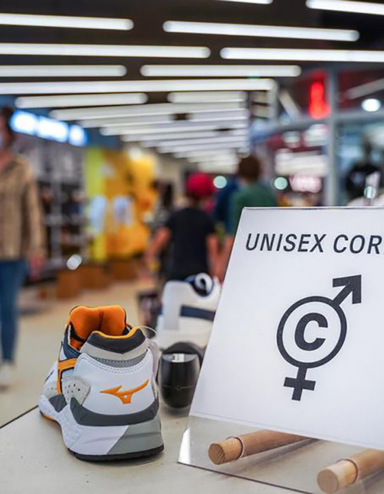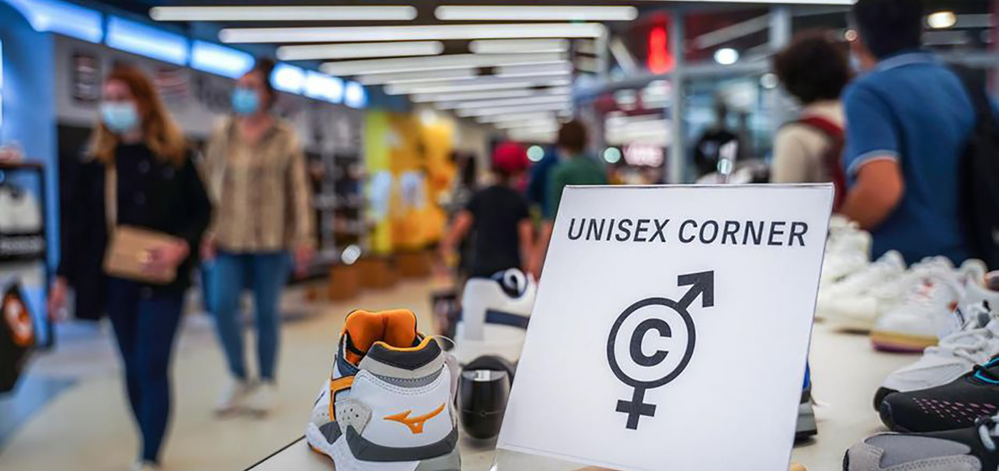 Neutral stands were propagated across the space, offering unisex clothing collections to a young clientele sensitive to gender-related issues. Streetwear had largely contributed to the growth of this trend, with similar pieces in the closets of men and women, such as sweatpants and sneakers. The unisex sections in the store are easily identifiable, bearing a logo that fuses the male and female symbols.