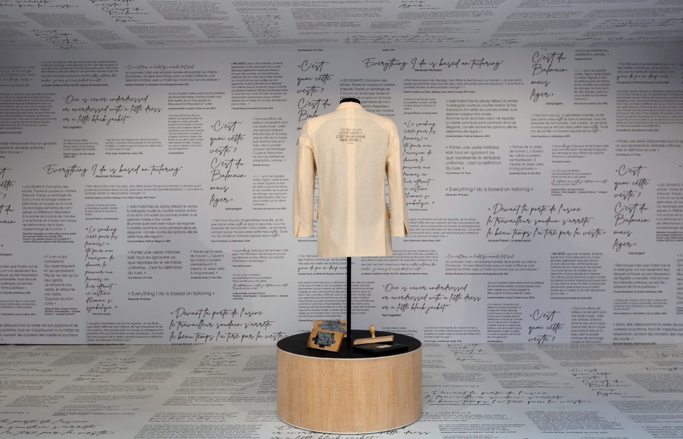 Following a 550m2 thematic trail, the “Vestologie” exhibition transcribes the rich social and cultural history of this garment, the foundation of the modern wardrobe, and plays with opposites. Eight sections contrast works or representations of fashion history with contemporary pieces. On loan from fashion houses, historical and vintage pieces from collectors, the ESMOD International study collection, Printemps archives, as well as photographic prints, videos, perfumes, samples, textiles, drawings, patterns and testimonials are presented, engaging all the senses.